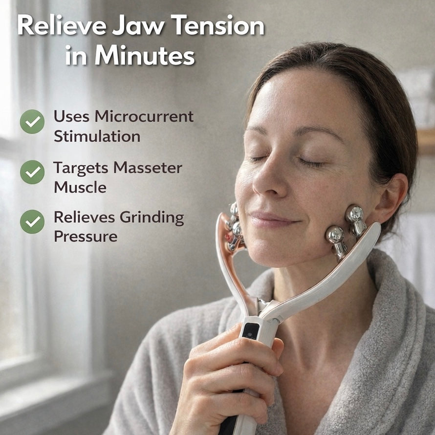 Watch how Lulla Sculpt™ glides along the jawline and masseter muscle to help reduce that built up tension to relieve pain.